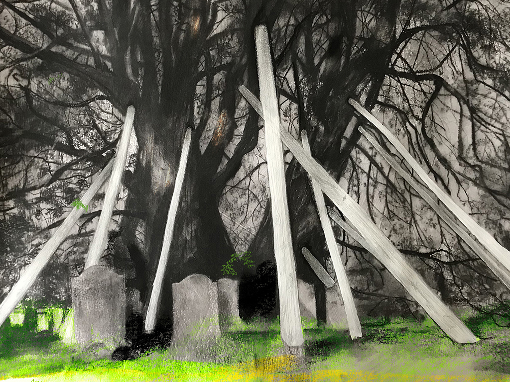Charcoal and pastel on paper